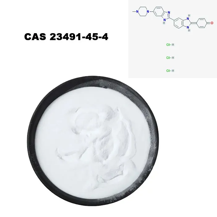 Junginys, atitinkantis CAS 23491-45-4, yra bisbenzimidas H 33258, kurio molekulinė formulė yra C25H24N6O · 3HCl, molekulinės masės 533,88 g/mol, {{723491-45-4 ir EINEC skaičiaus 245-690-6. skaičius CAS numeris23491-45-4 ir EINECS skaičius245-690-6. cas.